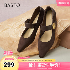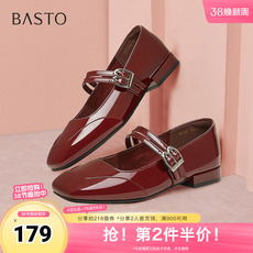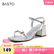 百思图春夏季新款商场同款时尚一字带凉鞋粗跟女凉鞋M7067BL4