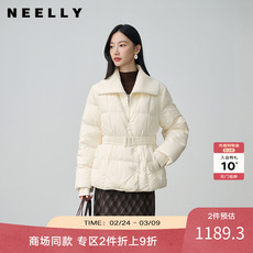NEELLY纳俪商场同款冬季新款90白鹅绒羽绒服女宽松短款面包服外套