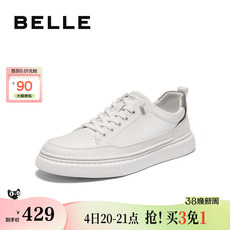 张凌赫同款百丽男鞋百搭小白鞋男士商场款免系带休闲板鞋8XD01CM5
