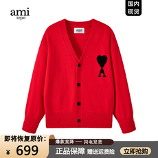 【一折专区】奥特莱斯丨Ami官网丨商场同款丨红色开衫毛衣男女款