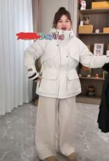 DM100大码百分百女装微胖mm冬季气质通勤收腰显瘦三防风衣羽绒服