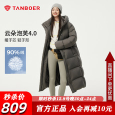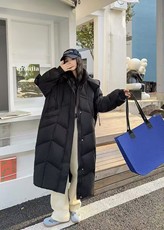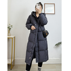 柜台1499~狠厚实90白鸭绒中长款羽绒服女 冬季加厚大被子连帽外套