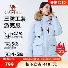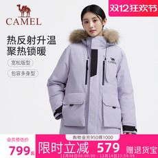 骆驼工装保暖羽绒服2025女款加厚冬季抗寒抗菌派克大毛领羽绒外套