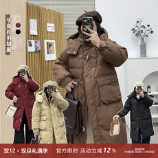 DM100大码百分百微胖mm女装冬宽松长款加厚可拆卸连帽羽绒服外套