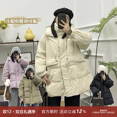 宛宛大码白鸭绒连帽面包服女冬季新款胖MM宽松保暖收腰羽绒服外套