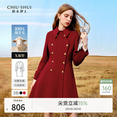 秋水伊人红色双面呢大衣女羊毛国风新中式2026春季中长款毛呢外套