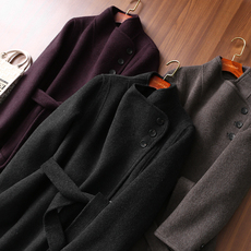 新款高端双面绒大衣女中长款西装领过膝修身羊毛呢外套气质秋冬