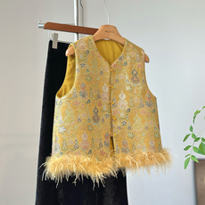高级感减龄洋气新中式夹棉马甲女冬季保暖外穿鸵鸟毛背心叠穿国风