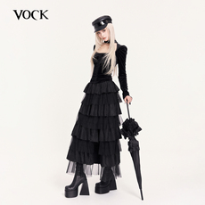 VOCK 追光逐影 暗黑浪漫仙女设计感拼接层次感网纱蛋糕半裙长裙子
