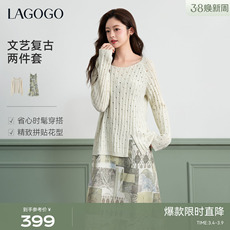 LAGOGO浪漫画报两件套连衣裙女拉谷谷2026春新款淑女印花仙气裙子