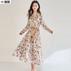 迪奥法式印花连衣裙女26春季新款复古浪漫氛围感长袖大摆碎花裙子