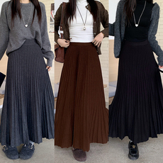 温柔风针织百褶半身裙女2025秋冬新款高腰垂感a字大摆加厚长裙子