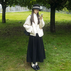 日杂风高级灰毛呢半身裙复古高腰a字裙垂感五分伞裙小个子蓬蓬裙
