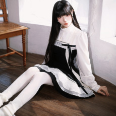 lulucake 小布点 织带波点花边裙优雅百褶A字型百搭裙