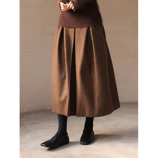 百褶半身裙秋冬新款2025大码胖m中长款厚毛呢a字伞裙垂感显瘦长裙