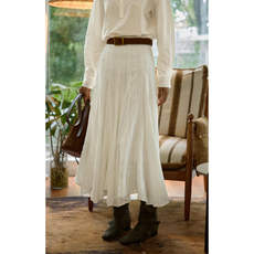 pusumede 棉锦混纺 白色半身裙女松紧腰a字遮胯长裙宽松气质伞裙