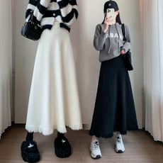 流苏针织半身裙女秋冬2025新款气质毛线半裙遮跨裙子高腰a字冬裙