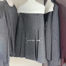 灰色加厚毛呢百褶半身裙女秋冬新款高腰显瘦防走光小个子a字短裙