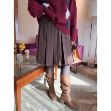 慕兔韩系复古咖色百褶裙女2025冬季新款小个子高腰显瘦a字半身裙