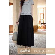 高级感a字黑色半身裙女大码长裙到脚踝胖mm显瘦遮胯垂感百褶裙子
