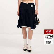 lefame拉飞姆2026早春新款时尚V型腰头学院风褶裥过膝半裙百褶裙
