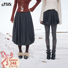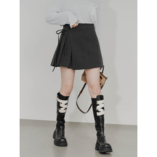 妖精的口袋绵羊毛灰色毛呢半身裙女2026年冬季新款甜美百褶裙短裙