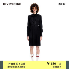 【小黑裙系列】诗篇专选撞色长袖收腰百褶裙摆连衣裙2026春季新款