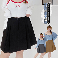 微胖的喵喵 梨形大码胖mm冬装显瘦气质高腰a字毛呢百褶短裙女2266