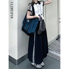 大码女装微胖妹妹mm美式工装开叉春秋高腰宽松显瘦休闲半身中长裙