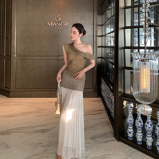 娅丽达解构压褶休闲a字半身裙女2026春季新款伞裙波嬉风出游长裙