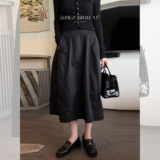 极简风黑色花苞裙女秋季新款遮肉显瘦通勤气质休闲百搭减龄半身裙
