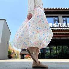 碎花蓬蓬花苞裙女春季长款绝美巨好看的半身裙大码温柔风彩色裙子