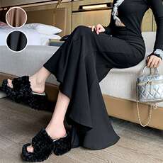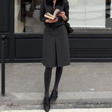 黑色醋酸羊毛呢半身裙女秋冬季直筒高腰显瘦大码极简风开叉中长裙