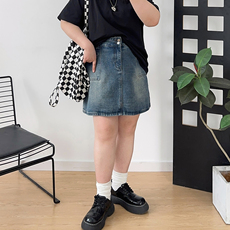 大码复古牛仔短裙女夏季新款胖mm遮肚子显瘦梨形身材a字半身裙子
