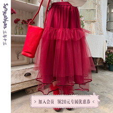 超美重工立体小花朵刺绣网纱a字半身裙高腰显瘦中长款蓬蓬仙女裙