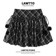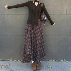 不规则棕色格子半身裙女春季大码美拉德格纹长裙梨型身材伯克利裙