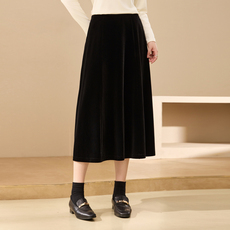 黑色金丝绒半身裙女大码春秋胖mm新款高腰中长款a字裙小个子裙子