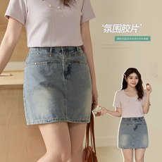 夏季高腰牛仔半身裙美式复古大码女装胖mm显瘦休闲时尚包臀短裙子