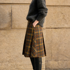 宛宛大码复古格子毛呢半身裙秋冬新款包臀A字裙胖mm高腰显瘦短裙