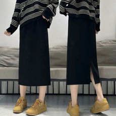 白色印花半身裙2026春季新款a字裙高腰中长款半身针织裙子女裙子