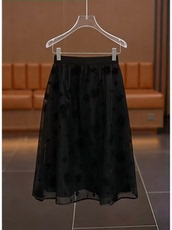 印花网纱a字裙半身裙女春2026新款高腰显瘦中长款大摆百褶裙长裙