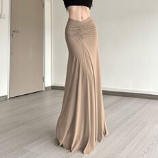 300斤气质褶皱修身显瘦半身裙高腰2025鱼尾新款半身裙长款垂坠感