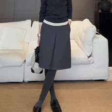 2026春季新款时尚复古极简休闲宽松显瘦百搭A字压褶开叉半身裙女