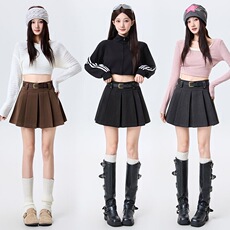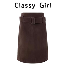 Classy girl a字半身裙女2026新款春秋包臀中长款美拉德麂皮绒裙