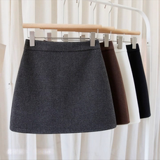 灰色毛呢花苞短裙女秋冬流行新款高腰显瘦遮肉百搭减龄休闲半身裙