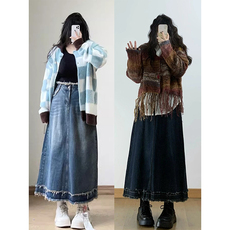 特大码复古牛仔裤半身裙女胖mm显瘦梨型身材高腰中长款a字鱼尾裙