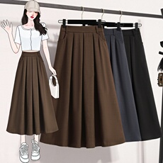 夏季女装批新款发大码宽松显瘦遮胯A字裙中长款百褶西装半身裙潮