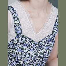 AZure温柔风蕾丝波点透视吊带背心多种面料拼接中长款连衣裙夏