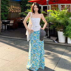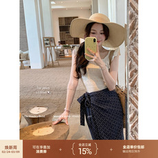 SEEYOULATER 慵懒度假风修身蕾丝绑带抹胸背心+清新印花海边半裙