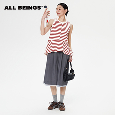 ALL BEINGS2025SS时尚轻薄设计感红白条纹裙摆外穿背心女夏季新款